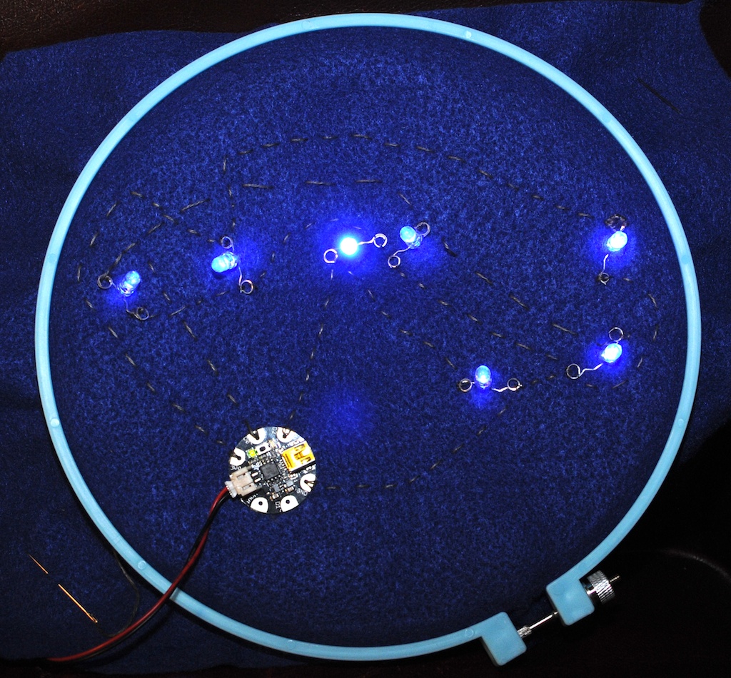 This is a great example of what can be accomplished with a paper circuit. The painting is by Jie Qi who developed Chibitronics paper circuits. http://technolojie.com/pu-gong-ying-tu-dandelion-painting/