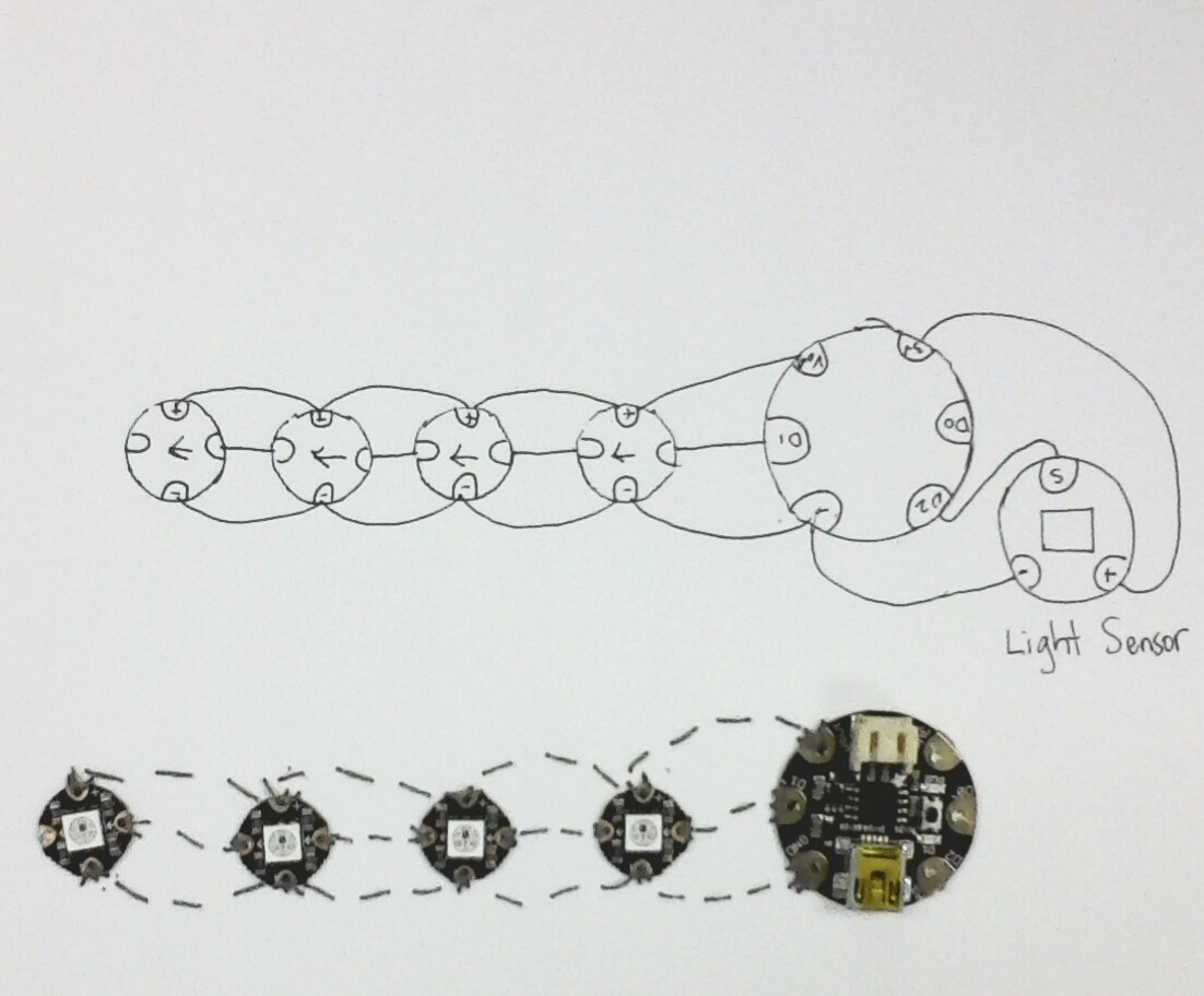 Next I sketched out my circuit noting the direction of current flow and placing a fold pocket for the battery.